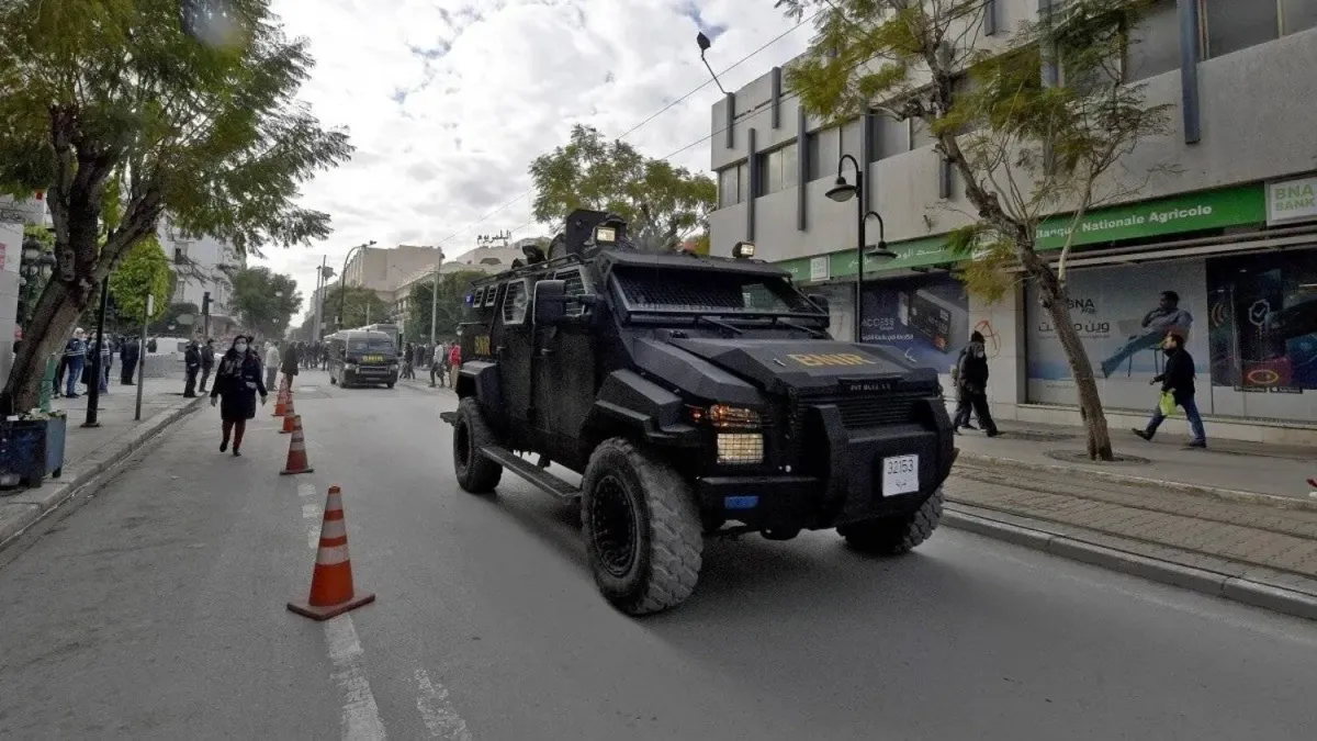 Tunisian security forces patrol along Habib Bourguiba avenue in the capital Tunis, on January 14, 2022. (AFP)