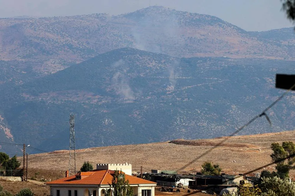 A picture taken from Lebanese town of Marjeyoun shows smoke billowing in the contested border area of Shebaa Farms on October 14, 2023, during a cross-border exchange between Lebanon and Israel. (AFP)