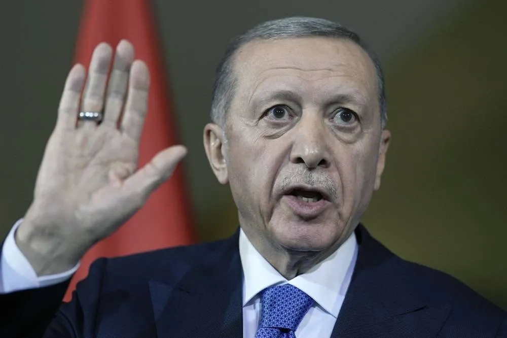 Türkiye’s President Recep Tayyip Erdogan talks to the media at a press conference during his visit at the chancellery with German Chancellor Olaf Scholz in Berlin, Germany, Friday, Nov. 17, 2023. (AP)
