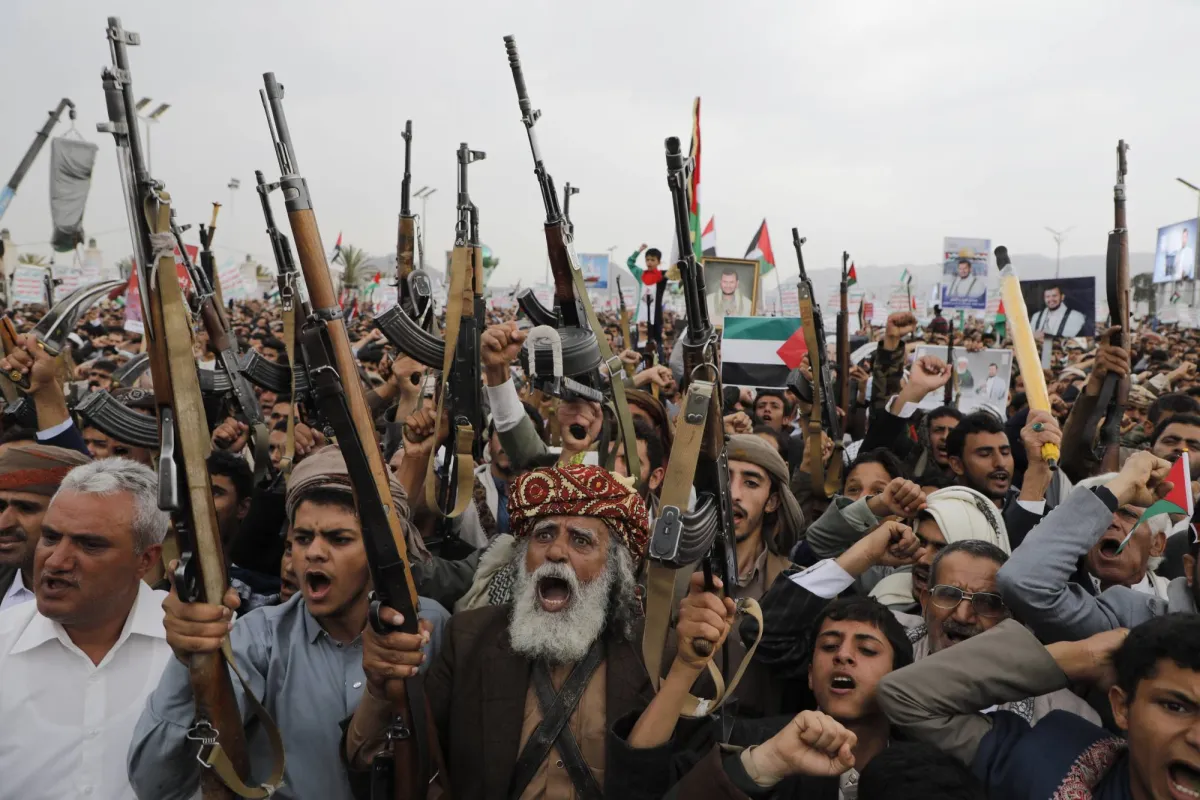 Houthi supporters attend a rally against the US and Israel in Sanaa, Yemen, on Friday, July 19, 2024. (AP Photo/Osamah Abdulrahman)