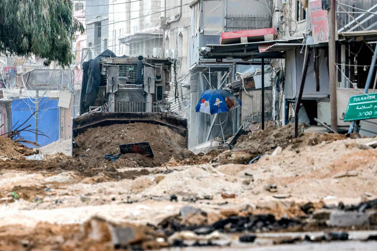 In Jenin earlier, Israeli bulldozers edged along empty, rubbish-strewn streets as the sound of drones pierced the sky.