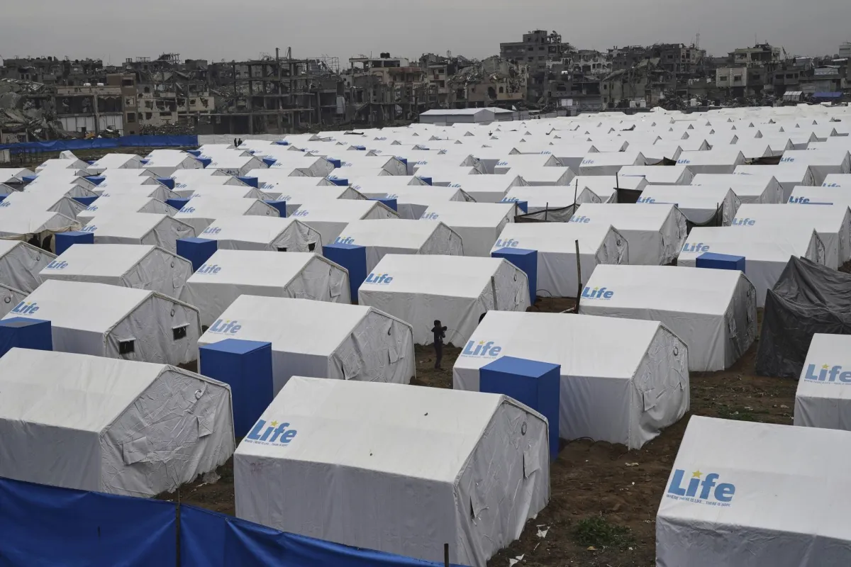 A boy stands among the tents of a newly established tent camp for displaced residents whose homes were damaged by Israeli army strikes in the Zeitoun neighborhood of Gaza City on Friday, March 7, 2025. (AP Photo/Jehad Alshrafi)