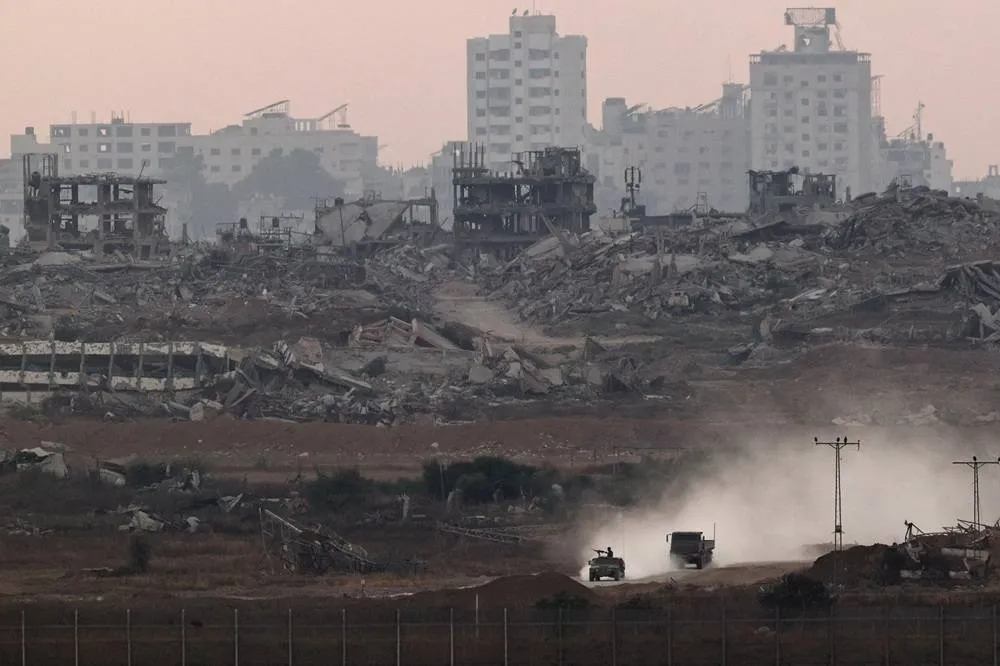 Israeli military vehicles maneuver inside the Gaza strip, as seen from Israel, June 25, 2025. (Reuters)
