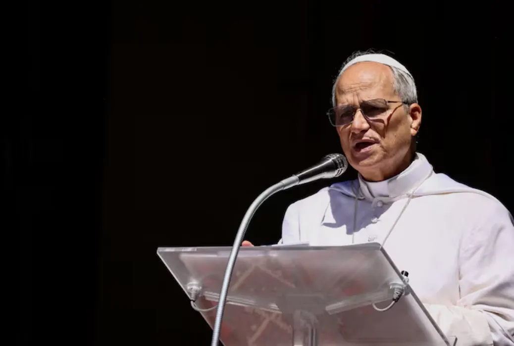 Pope Leo XIV leads the Angelus prayer in Castel Gandolfo, Italy, July 20, 2025. REUTERS/Yara Nardi