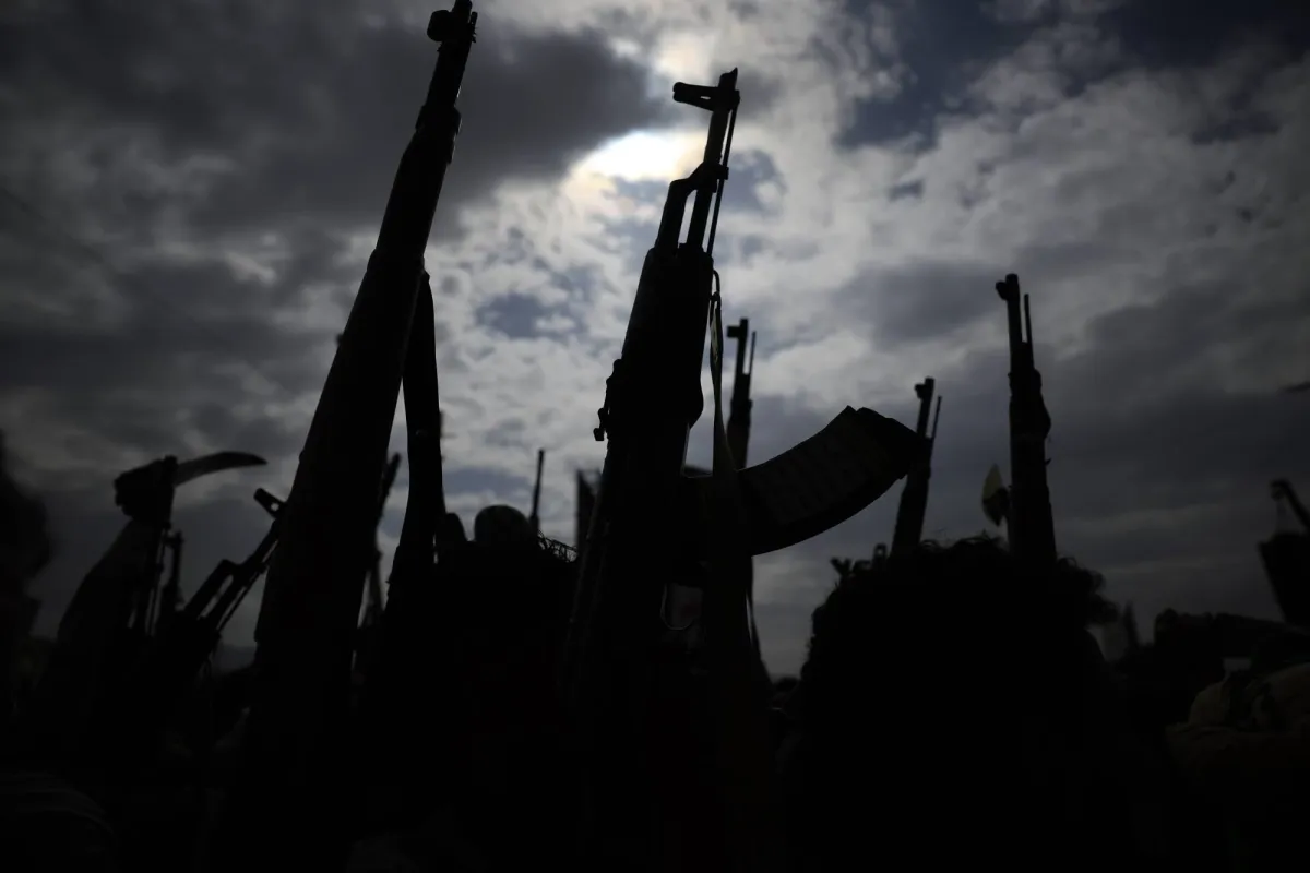Houthi supporters hold up their weapons during a protest against Israel in Sanaa, Yemen, 29 August 2025. EPA/YAHYA ARHAB