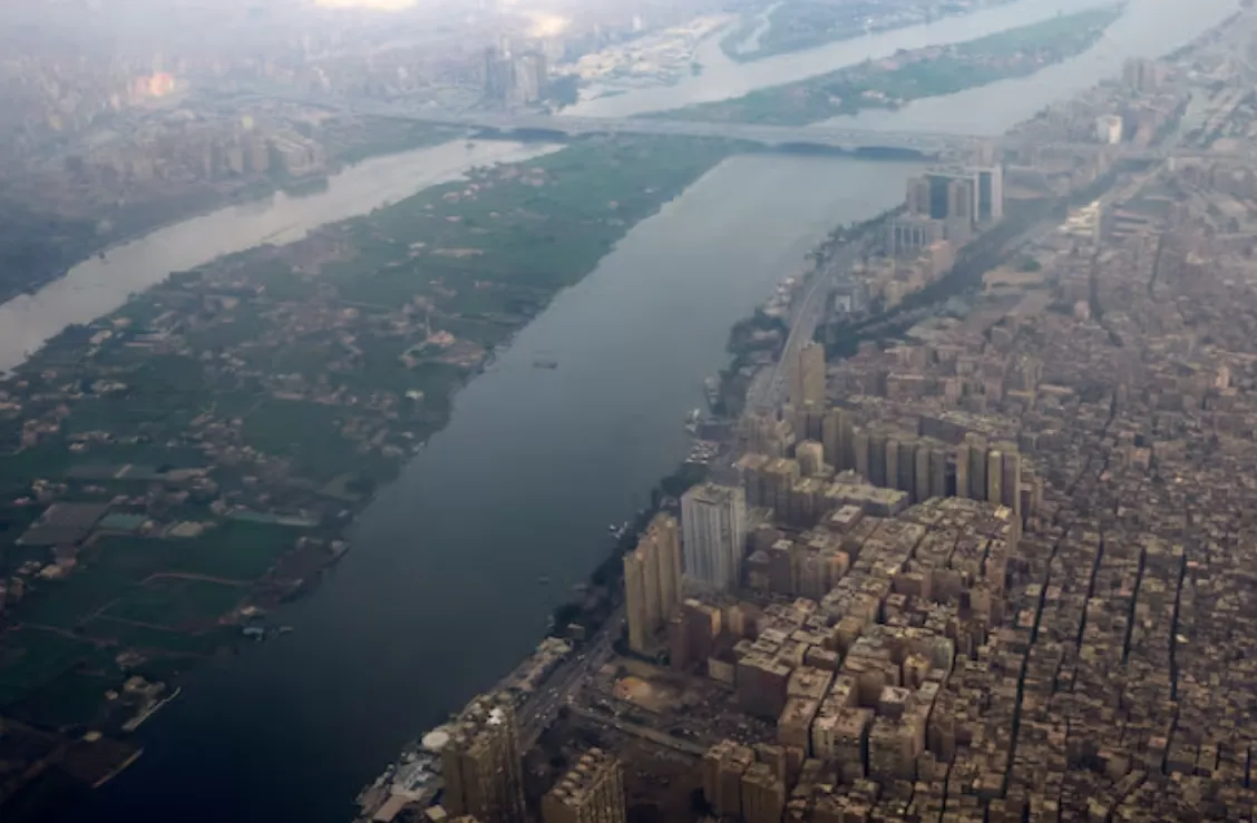 An aerial view shows the river Nile and traffic, as pictured through the window of a plane, in Cairo, Egypt, February 6, 2025. REUTERS/Amr Abdallah Dalsh