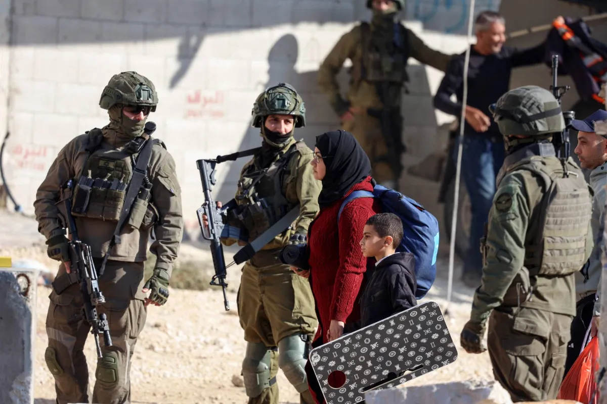 Troops performed ID checks and physical searches, allowing through only those whose houses were set to be demolished.