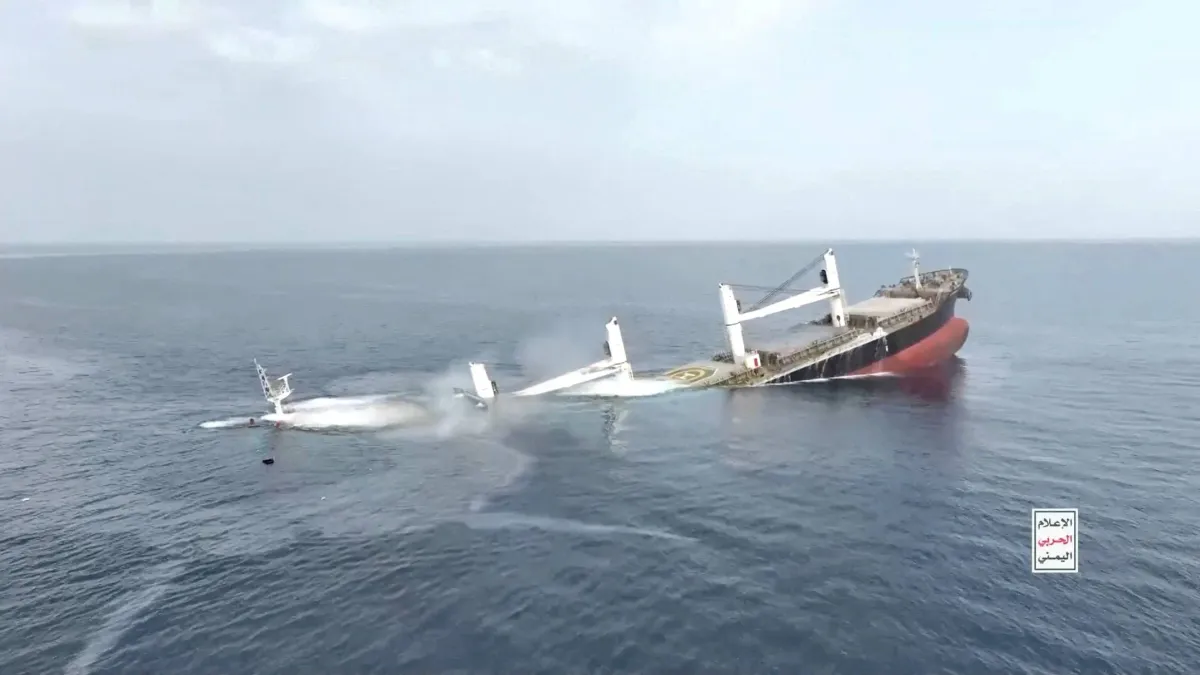 The Iran-aligned Houthis sank the ⁠Liberia-flagged ⁠Eternity C, which had 22 crew and three armed guards on board, after attacking it with sea drones and rocket-propelled grenades over two consecutive days.