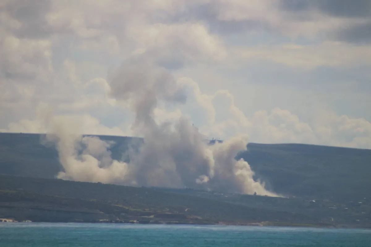 A photograph taken from the southern Lebanese city of Tyre shows smoke induced by Israeli military activities as it rises from the area of Naqoura on April 6, 2026. (Photo by Kawnat HAJU / AFP)