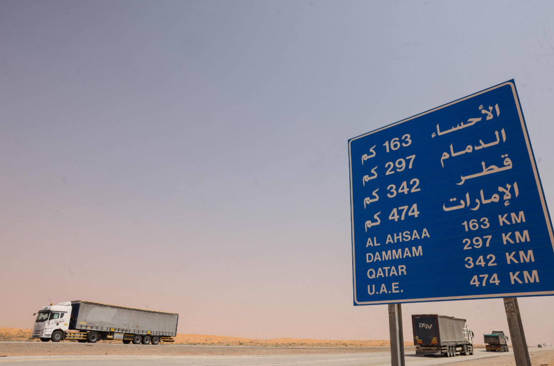 Trucks on the highway between Riyadh and Al-Ahsa, about 200 kilometers east of the Saudi capital (AFP)