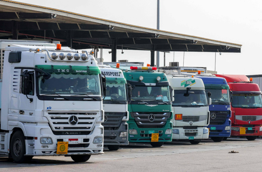 Trucks loaded with goods wait to cross into Qatar at the Salwa border crossing in eastern Saudi Arabia (AFP)