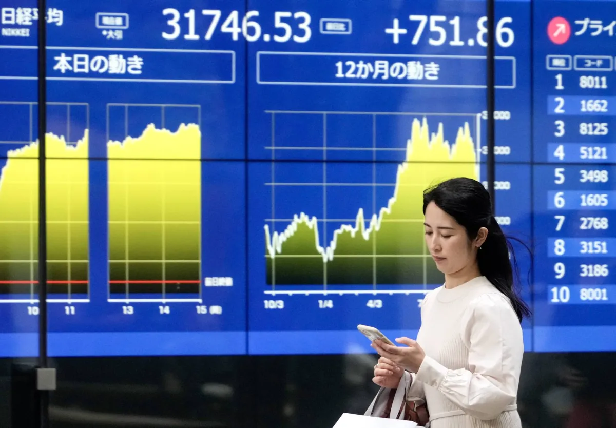 A passerby walks past a stock market indicator board in Tokyo, Japan, 10 October 2023.  EPA/FRANCK ROBICHON