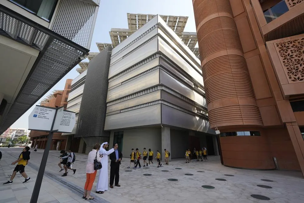 People visit Masdar City near Abu Dhabi, United Arab Emirates, as Dubai hosts the COP28 UN Climate Summit, Friday, Dec. 8, 2023. (AP)