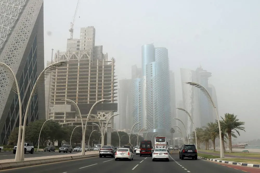 Traffic moves during a sandstorm in Doha on April 15, 2025. (AFP)