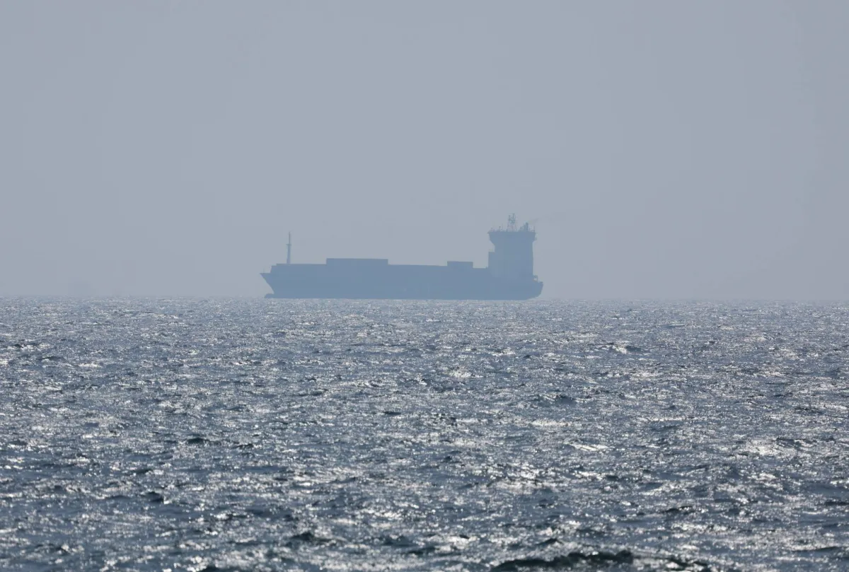 A container ship sails on the Strait of Hormuz, as seen from Ras Al Khaimah, United Arab Emirates, 23 June 2025. EPA/ALI HAIDER
