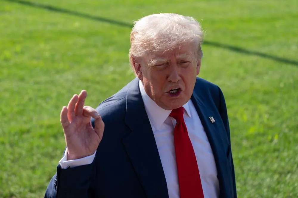 25 July 2025, US, Washington: US President Donald Trump speaks to the media before heading to Scotland this weekend for meetings and to play golf. (dpa)