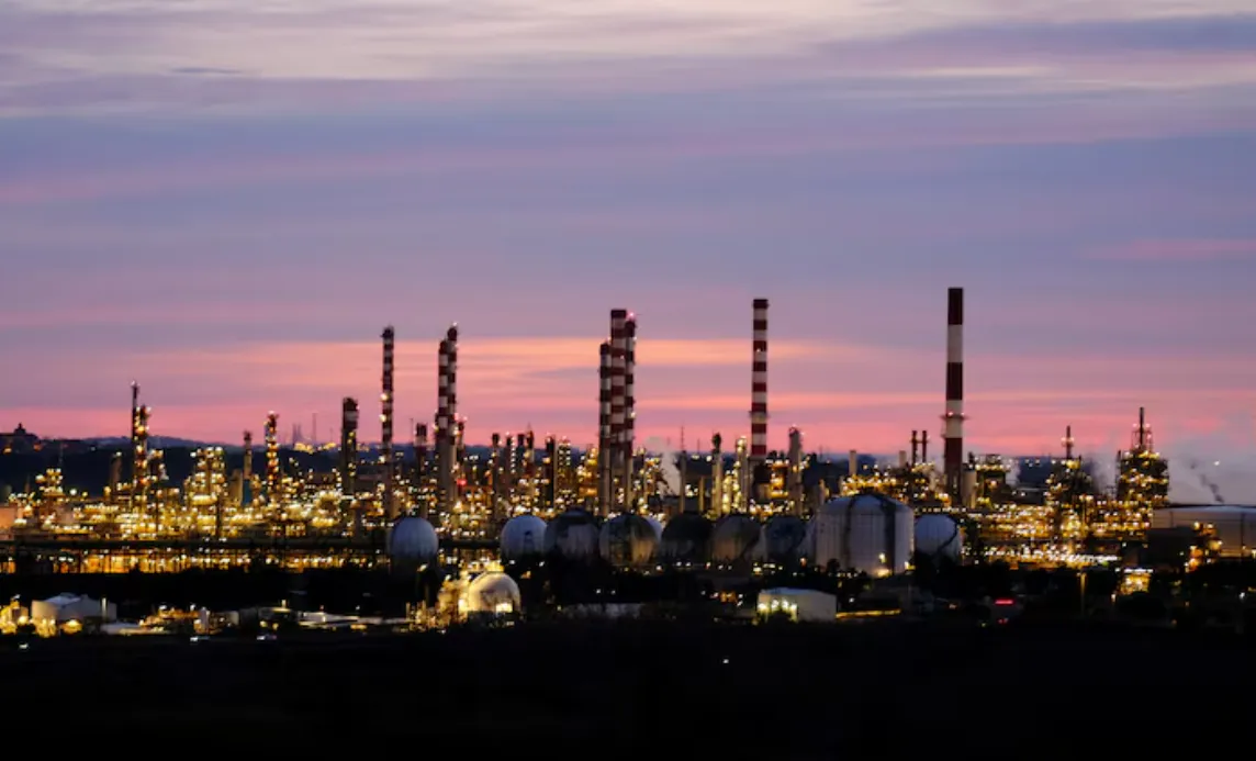 Repsol oil refinery complex is seen during the sunset near Tarragona, Spain February 13, 2025. REUTERS/Nacho Doce/File Photo