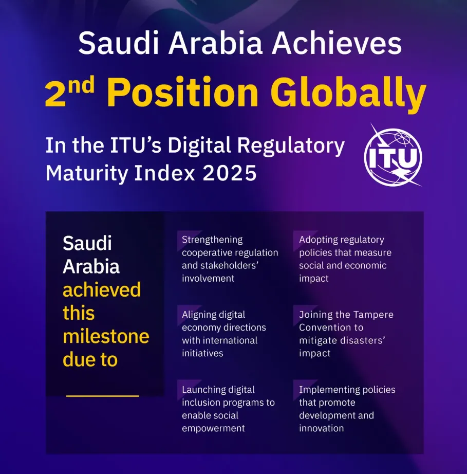 Saudi Arabia Achieves 2nd Position Globally in ITU’s Digital Regulatory Maturity Index 2025