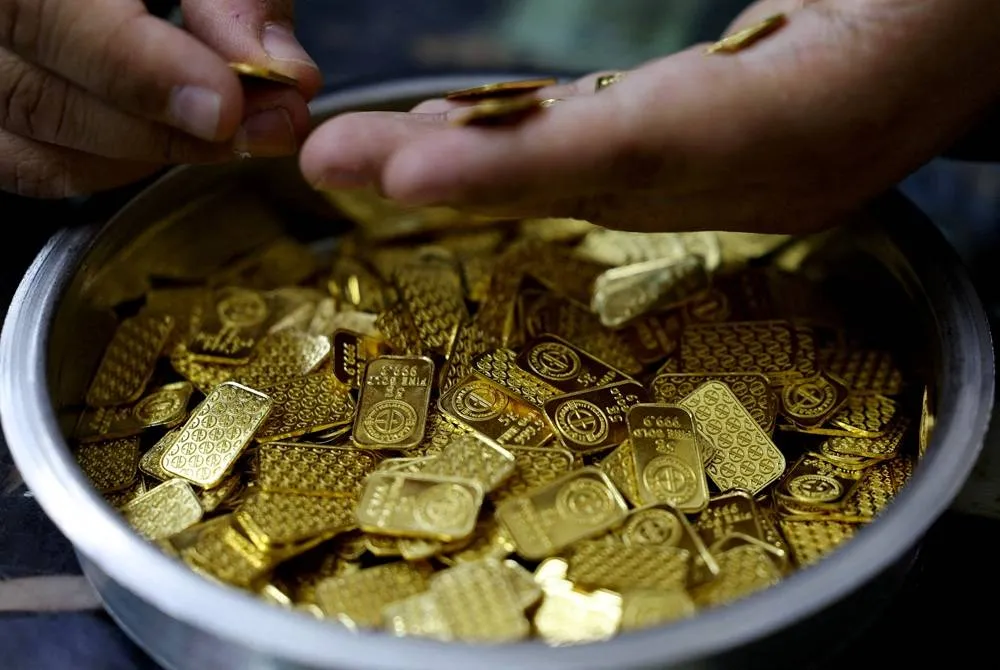 A jeweller holds gold bars in Cairo, Egypt, March 9, 2026. (Reuters)