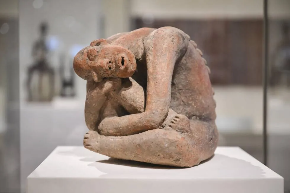 Next to it sits a clay sculpture of a curled body from the ancient city of Djenne-Djenno, in present-day Mali, which is believed to be one of the oldest pieces in the collection, dating back to the 13th century.