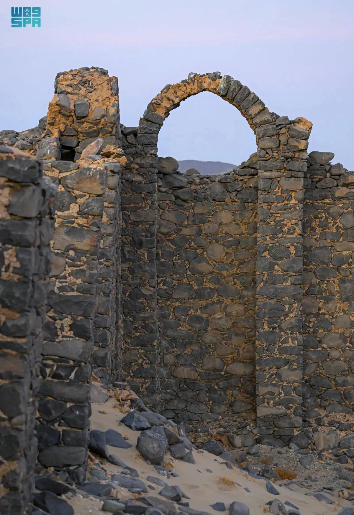 Perched on the left bank of the Wadi Al-Ghaidah, Alia Palace resembles the remnants of a crumbling fortress dating back to the Abbasid era. It forms part of a long-lost city, with only the foundations of basalt stone structures remaining, the Saudi Press Agency said on Monday.