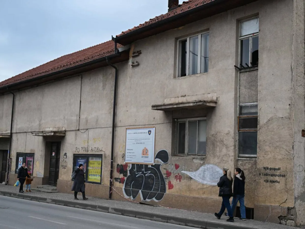 Signs warn passers-by in the historic city of Prizren that parts of the Lumbardhi's crumbling facade could fall while it waits for its long-promised refurbishment.