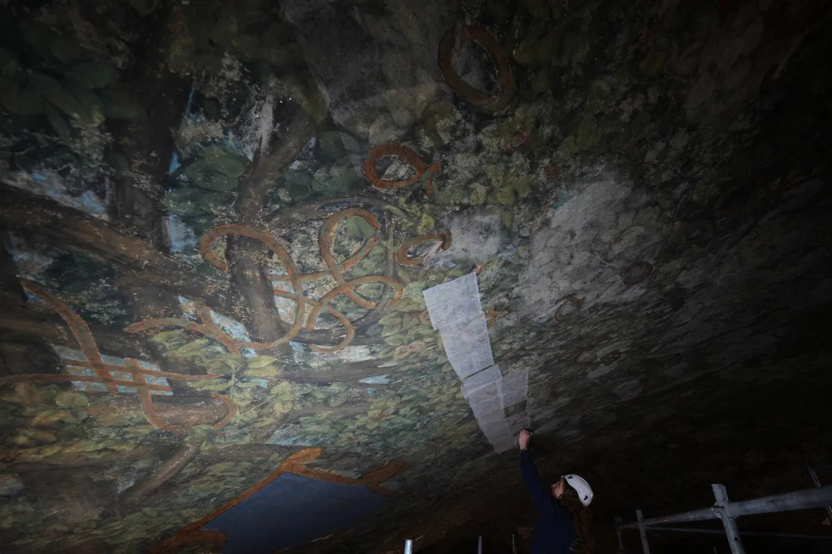 Restorers are using Japanese rice paper with demineralized water to remove salts that have seeped into the walls, gradually cleaning the surface of the painting.