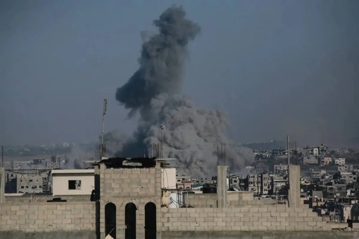 A plume of smoke rises during an Israeli strike on Jabalia in the northern Gaza Strip on June 13, 2025. (AFP)