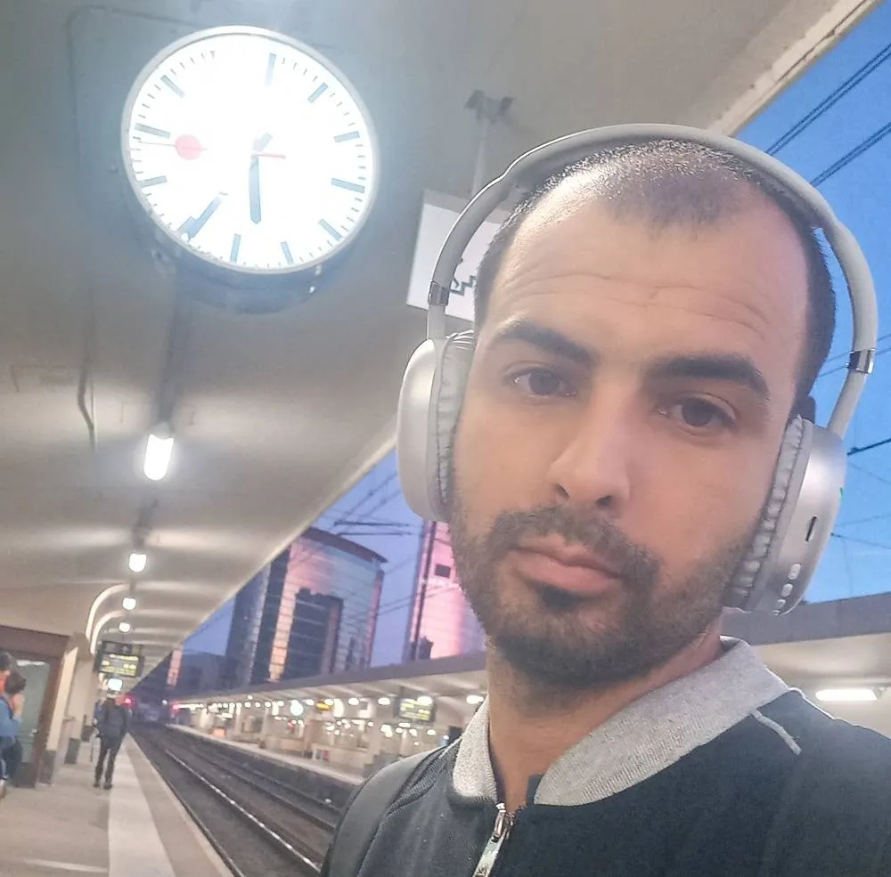 Muhammad Abu Dakha, a 31-year-old Palestinian from Gaza, takes a selfie at the train station in Brussels, Belgium August 25, 2025. (Muhammad Abu Dakha/Handout via Reuters)