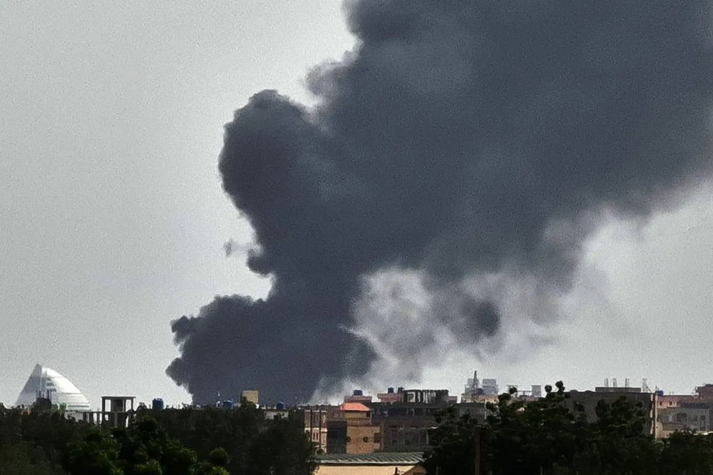 Smoke billows behind buildings from a reported fire in Khartoum, on June 5, 2023, as fighting continues between two warring generals. (AFP)