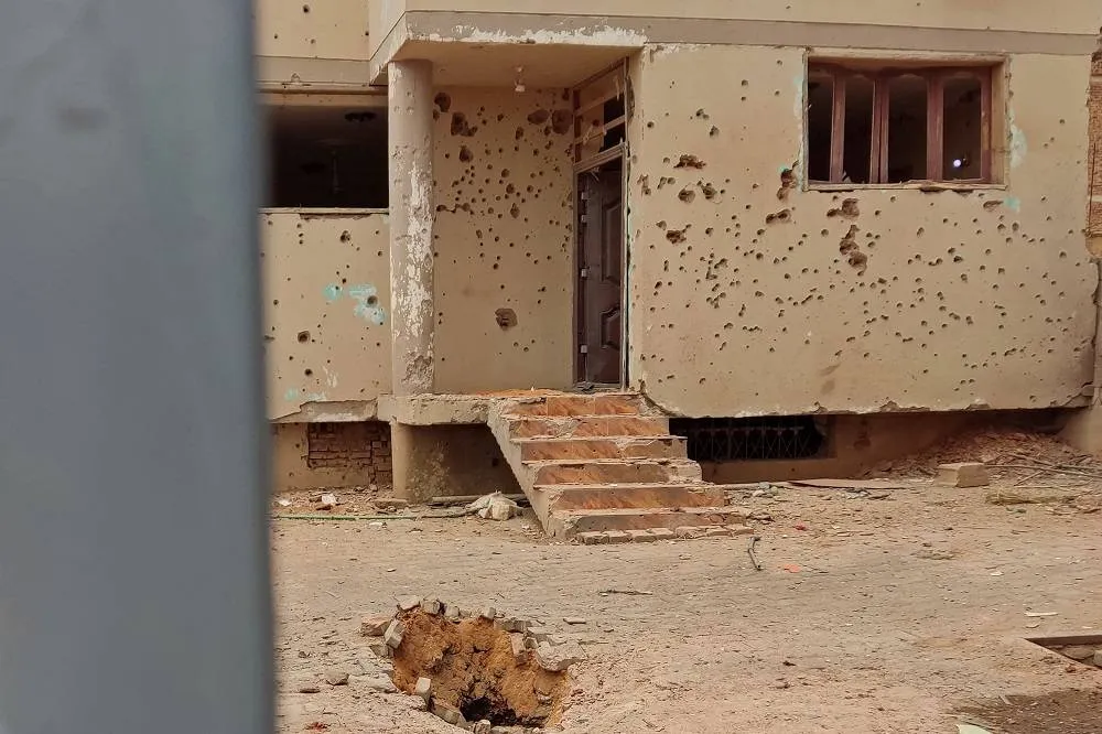 This picture shows a damaged house that was hit by an artillery shell in southern Khartoum on June 11, 2023. (AFP)
