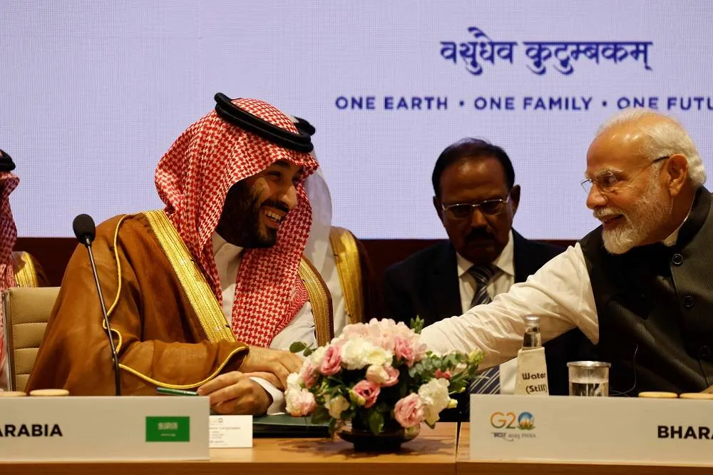 Speaking at a meeting on the sidelines of the G20 summit in India, Crown Prince Mohammed declared he was “pleased to be gathered here to sign the MoU.”