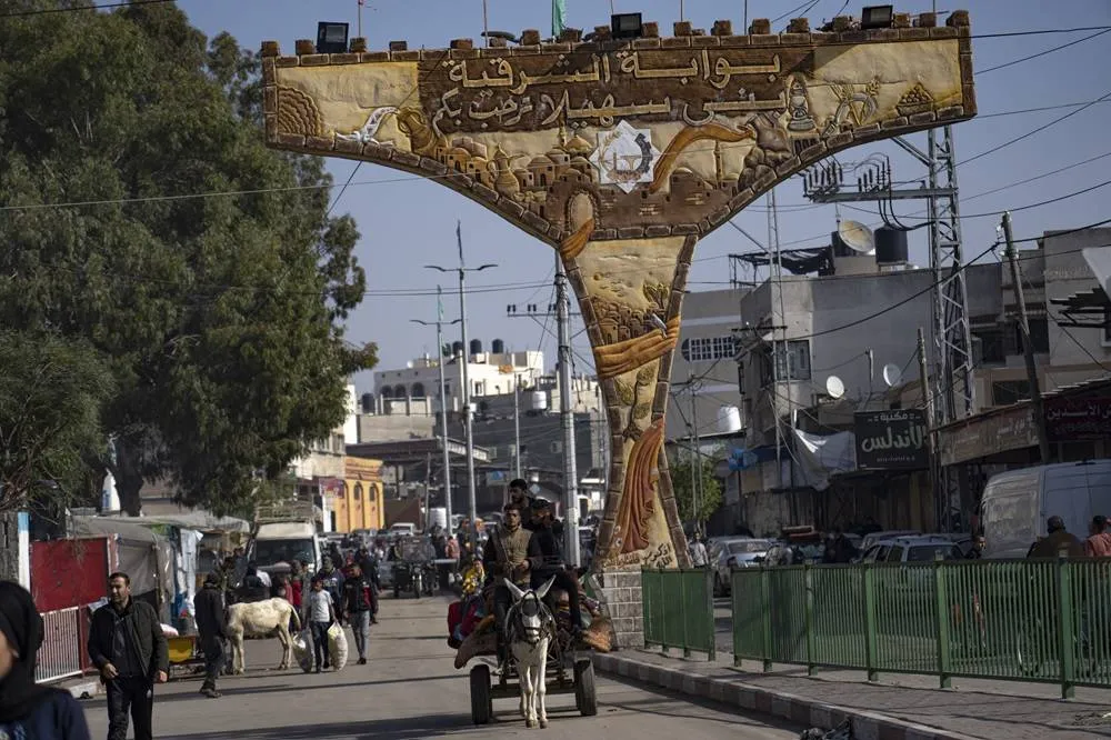Palestinians flee from east to west of Khan Younis, Gaza Strip, during the ongoing Israeli bombardment, Saturday, Dec. 2, 2023. (AP)