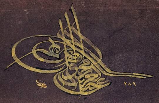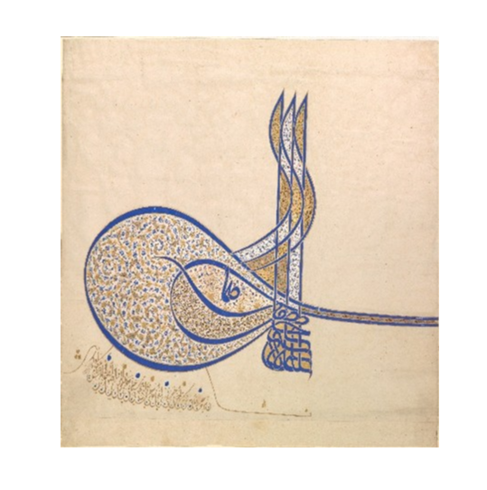 In the Ottoman Empire, the imperial tughra functioned as a composite sovereign signature, bearing the sultan’s name and titles in a dense visual form.
