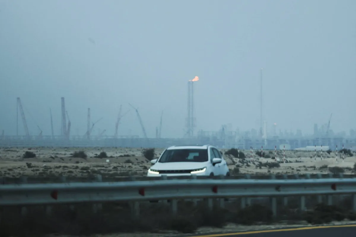 A car passes near QatarEnergy's liquefied natural gas (LNG) production facilities, amid the US-Israeli conflict with Iran, in Ras Laffan Industrial City, Qatar March 2, 2026. (Reuters)