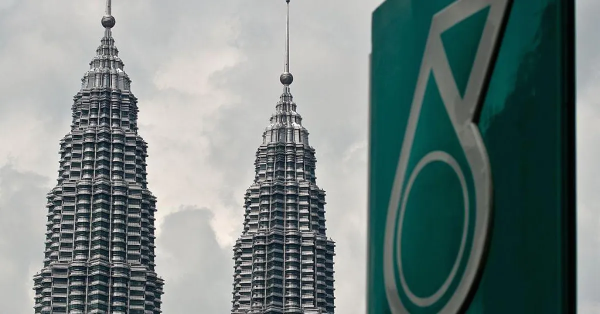 The logo of a Petronas fuel station is seen with the Petronas Twin Towers in the background in Kuala Lumpur, Malaysia. AFP