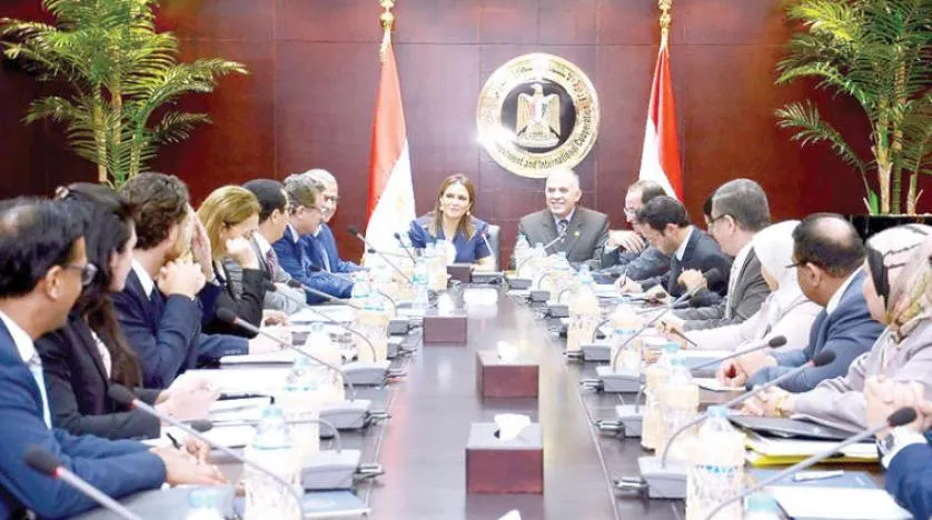 Egyptian officials during their meeting with the  AfDB delegation in Cairo on Wednesday. Asharq Al-Awsat