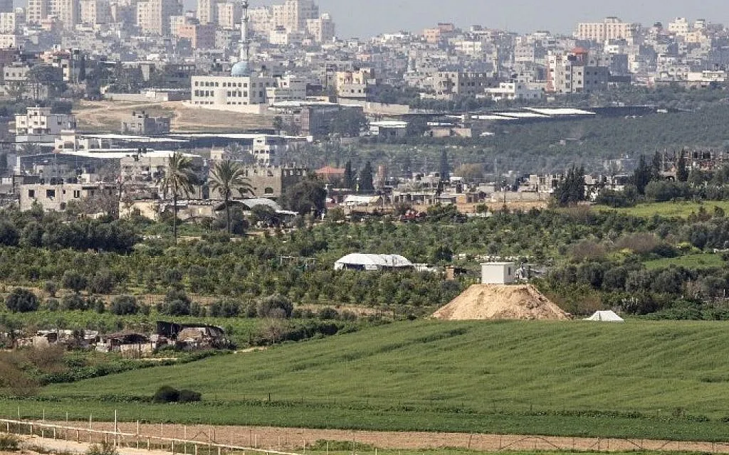 A photo taken from the Israeli side of the border with the Gaza Strip shows a Hamas outpost on a hill (right) along the border, February 25, 2016. (AFP/Jack Guez)