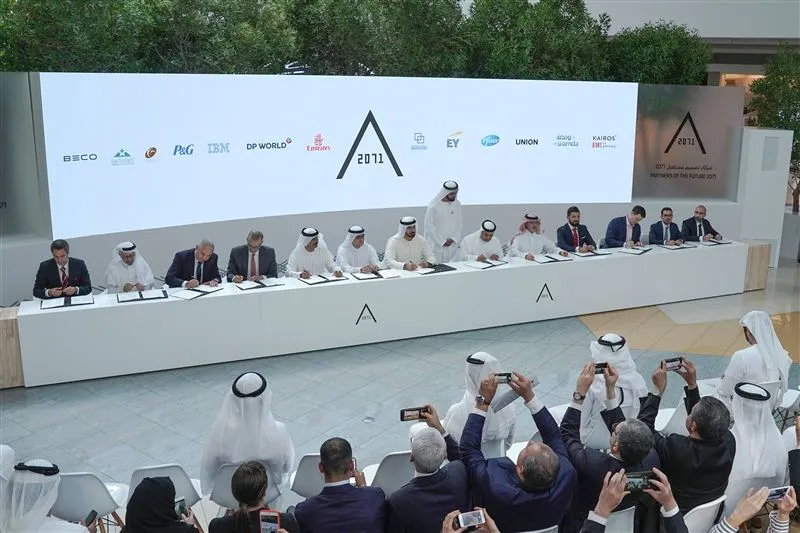 Several entities signed MoUs with Area 2071, including the United Nations, Pfizer, Proctor and Gamble, Ernst and Young, the Mohammed bin Rashid Center for Government Innovation, the Dubai Department for Economic Development, Pico Capital, Genco General Contracting, IBM International, E11, 1776, DP World, and Wamda Capital.