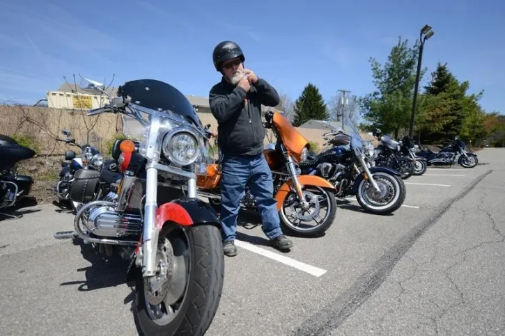 Bud Kerr of Ellwood City, Pennsylvania, arrives for a Bikers for Trump 2016 rally at Jergel?s Rhythm Grille in Warrendale, Pennsylvania April 24, 2016. REUTERS/Alan Freed