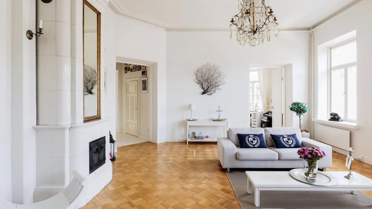 The 1,600-square-foot apartment was fully renovated in 2012, said Tommi Karhula, a sales agent with Snellman Sotheby’s International Realty, which has the listing. The main entrance opens to a foyer that leads to a large living room with 13-foot ceilings, a wall of windows overlooking the city, refinished parquet floors and a decorative floor-to-ceiling tiled stove, one of three in the apartment. (The stoves are not used for heating now, but could be made functional, Mr. Karhula said.)