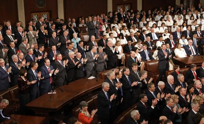 Republicans applaud as US President Donald Trump addresses the US Congress. REUTERS/Kevin Lamarque