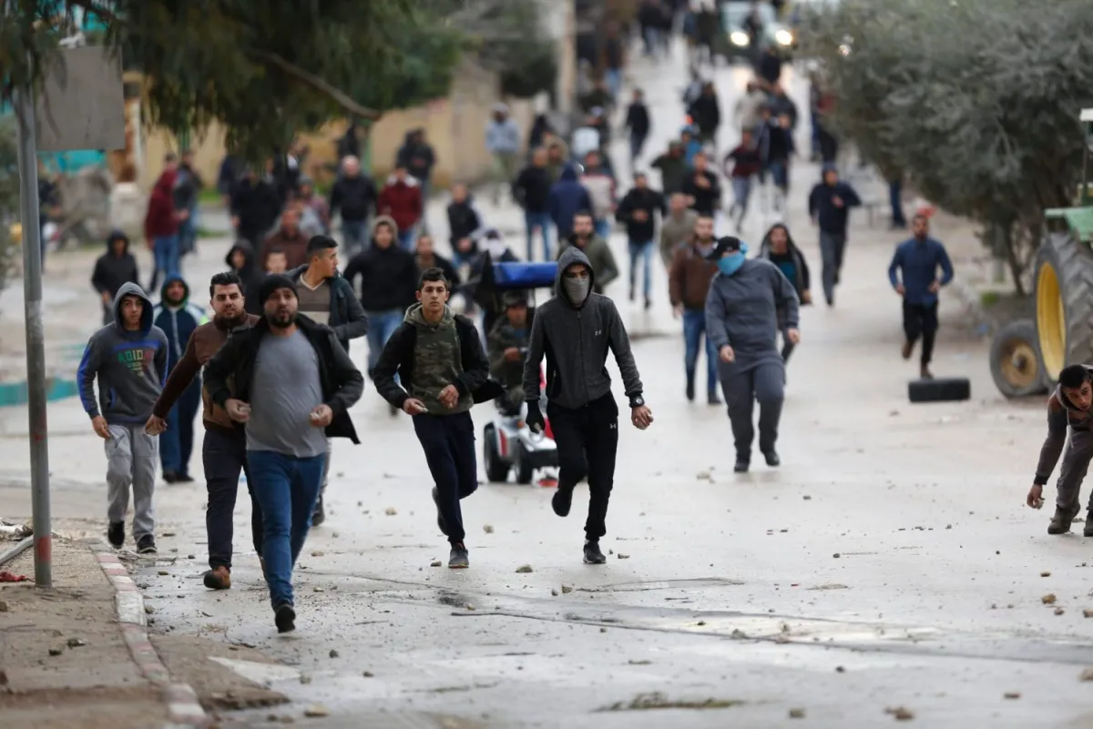 Palestinians clash with Israeli troops in the West Bank city of Jenin on January 18, 2018. Majdi Mohammed/AP
