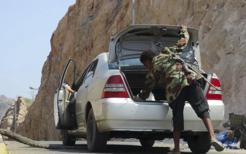 A fighter loyal to Yemen’s government searches a car at a checkpoint in the country’s southern port city of Aden October 19, 2015. REUTERS/Stringer