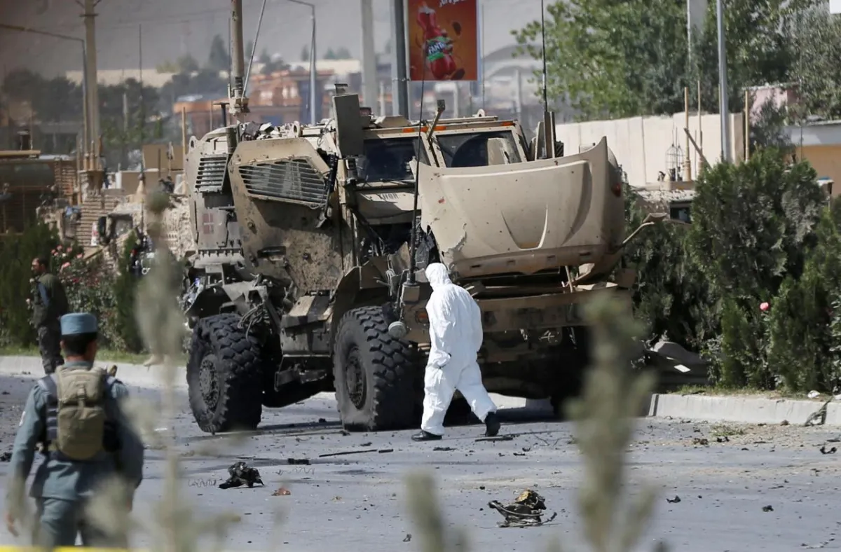 An Afghan official investigates a damaged Danish convoy at the site of a car bomb attack in Kabul, Afghanistan September 24, 2017. REUTERS/Omar Sobhani