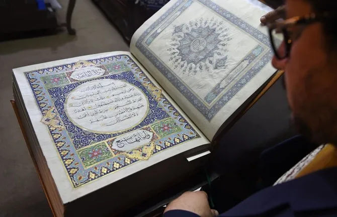 Turquoise Mountain hopes the silk Qur’an will generate demand for more handmade Islamic religious texts that could create employment for its artisans and help finance the institute. (AFP)