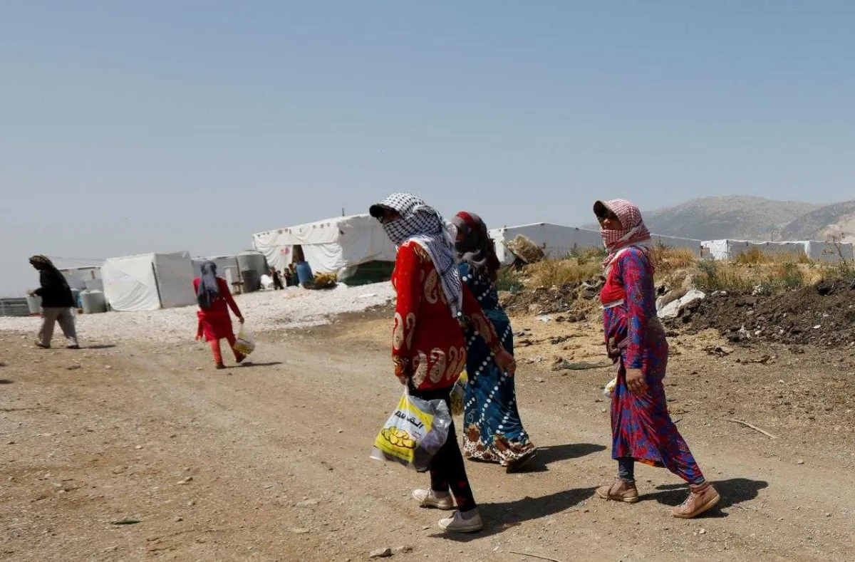 Syrian refugee women walk together at a camp for Syrian refugees near the town of Qab Elias, in Lebanon's Bekaa Valley, August 8, 2017. REUTERS/Jamal Saidi