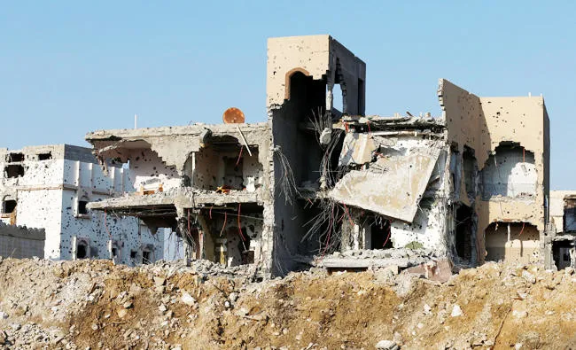 Remains of buildings are seen following a security campaign in the town of Awamiya, in the eastern part of Saudi Arabia, in this August 9, 2017 photo. (REUTERS)