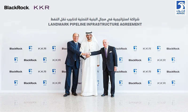 Abu Dhabi National Oil Company (ADNOC) announced that it has entered into a landmark midstream pipeline infrastructure partnership with KKR and BlackRock, two of the world’s leading institutional investors.