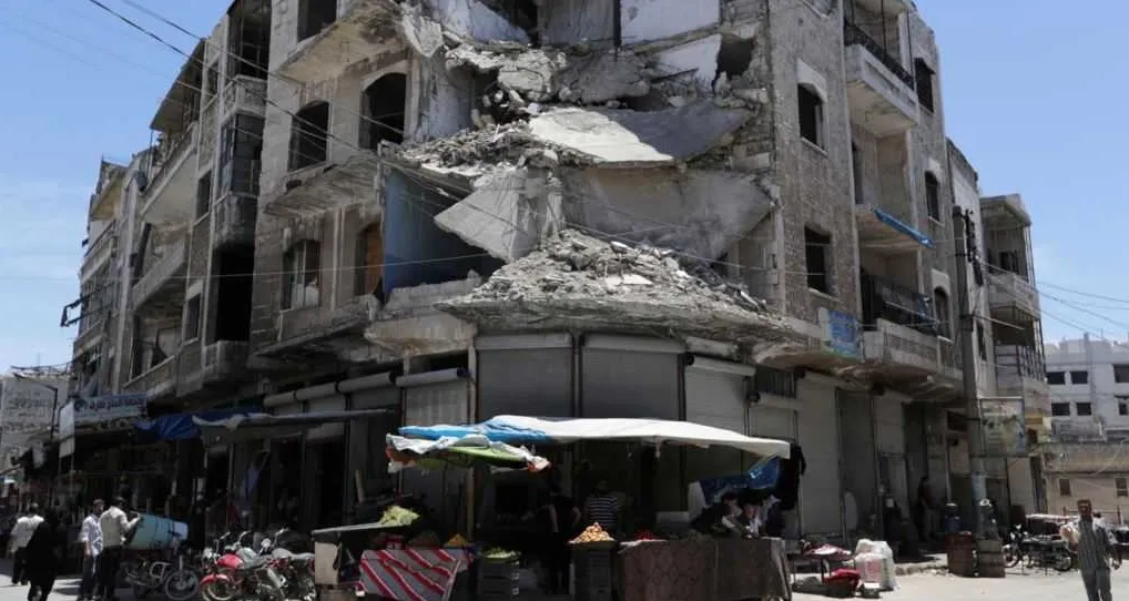 FILE - People walk past a damaged building in the city of Idlib, Syria, May 25, 2019 (Reuters)